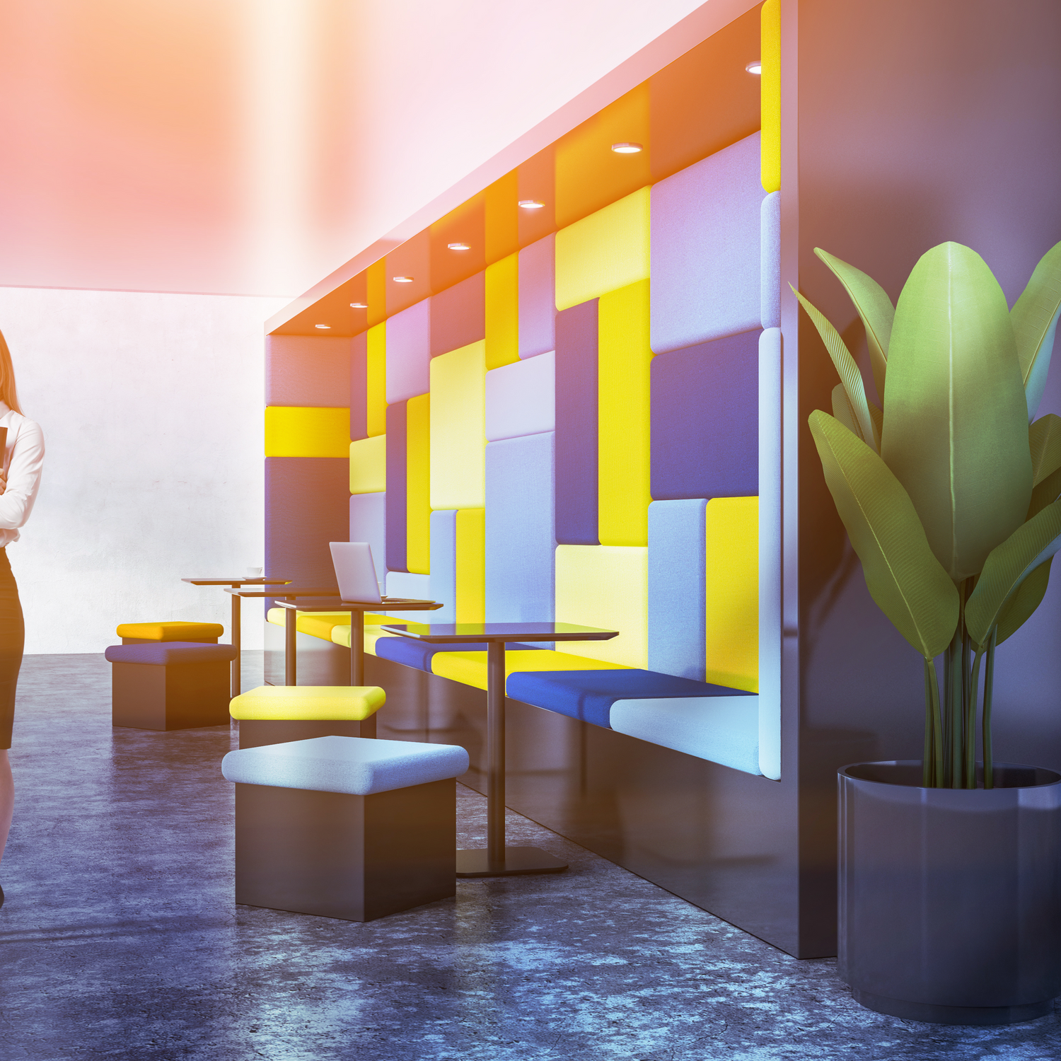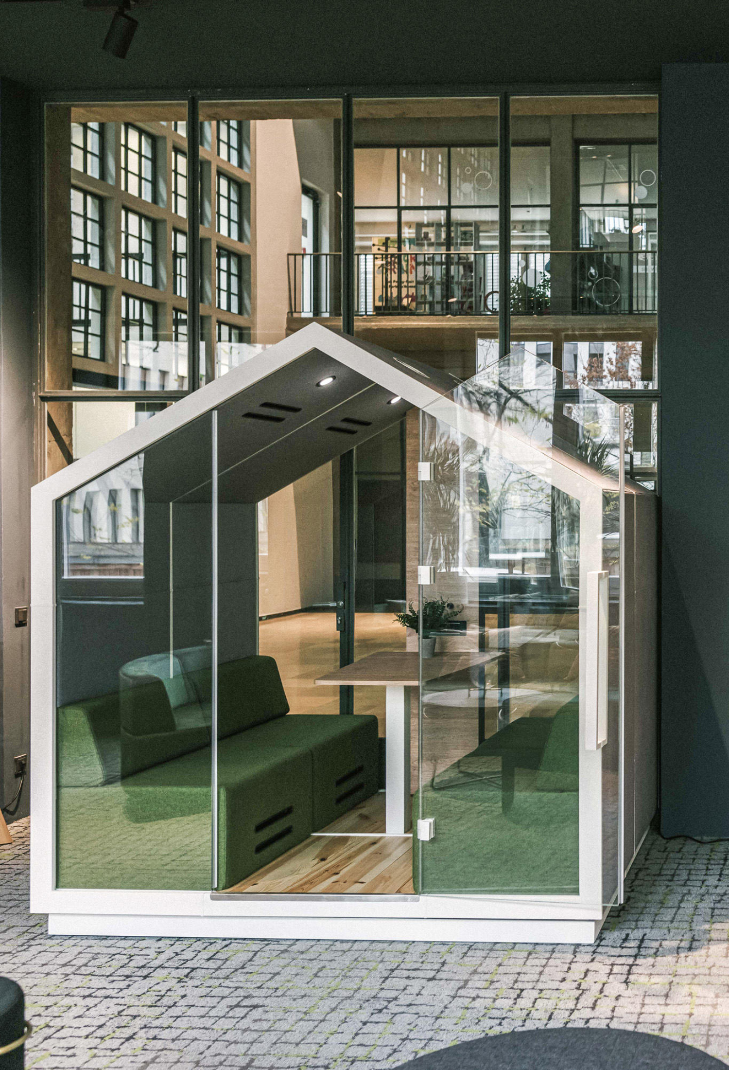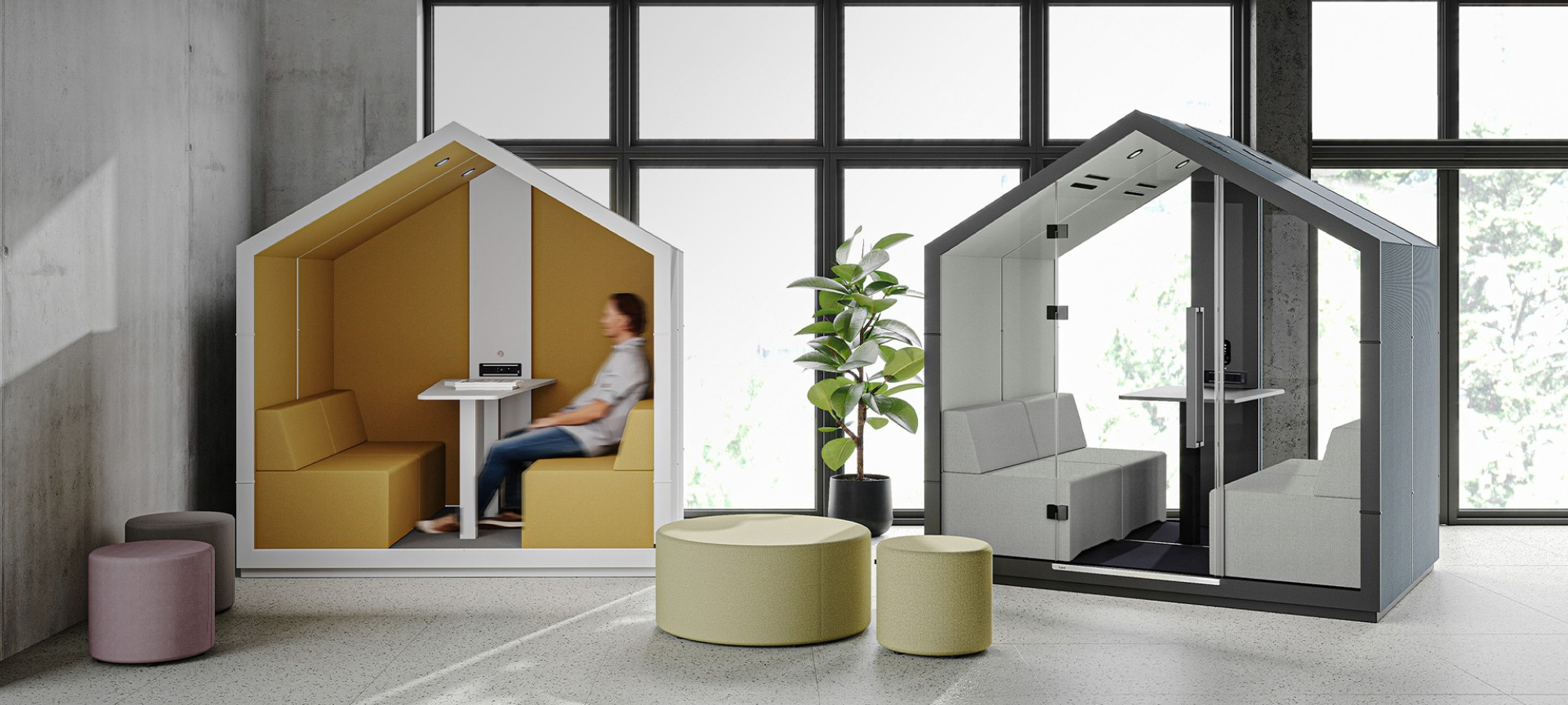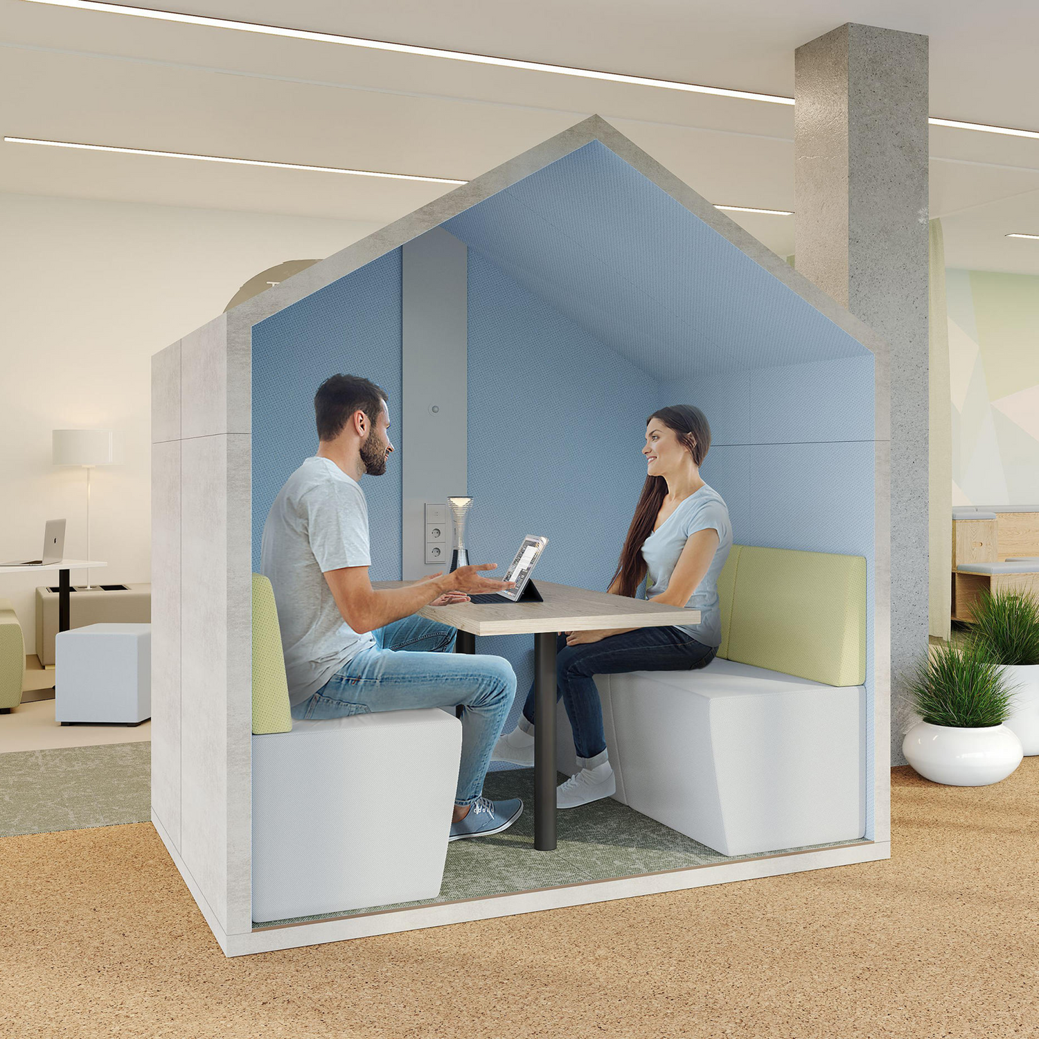 I mobili acustici Quadra creano un luogo in cui possiamo nasconderci dal trambusto dell'ufficio, parlare in silenzio o concentrarci sul compito. Il design leggero e mobile consente una rapida riorganizzazione dello spazio e di posizionare il divano ovunque sia necessario.
