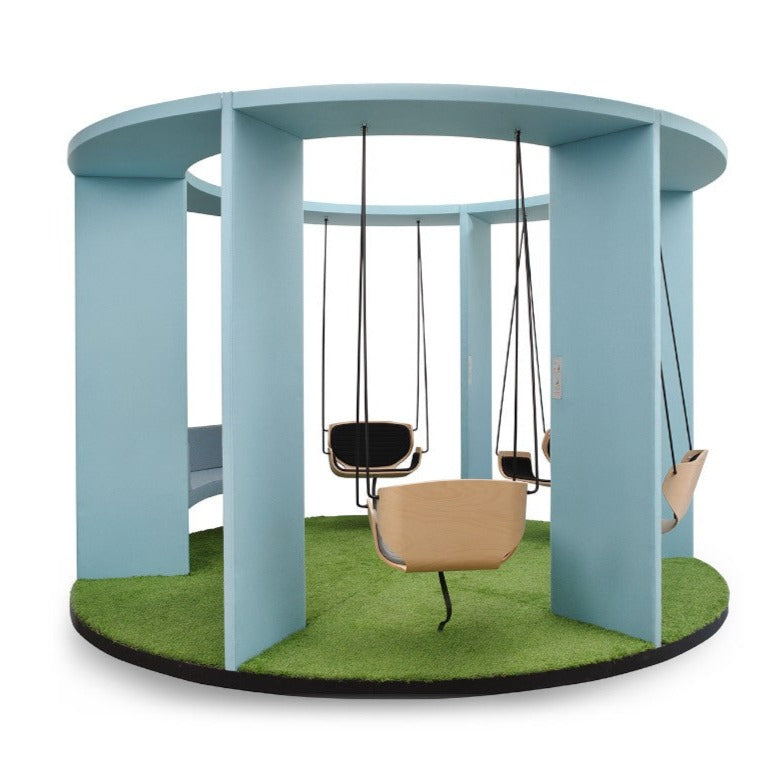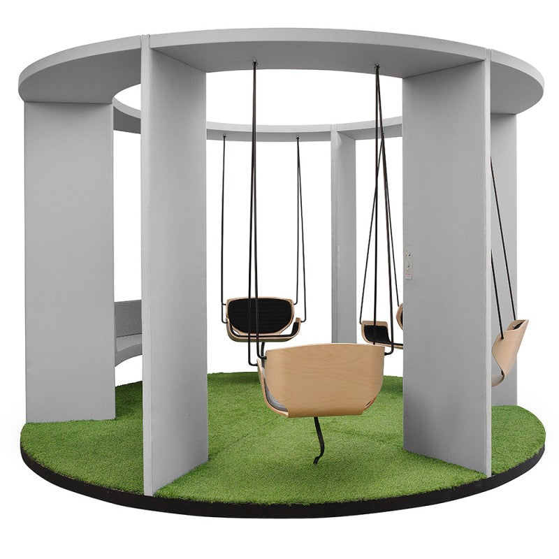 The Social Swing crea un luogo di incontro informale che stimola la creatività trasferendo allo stesso tempo l'atmosfera del parco in ufficio. Questo è il luogo dove possono nascere le idee più stimolanti e sorprendenti in un clima di libera discussione.